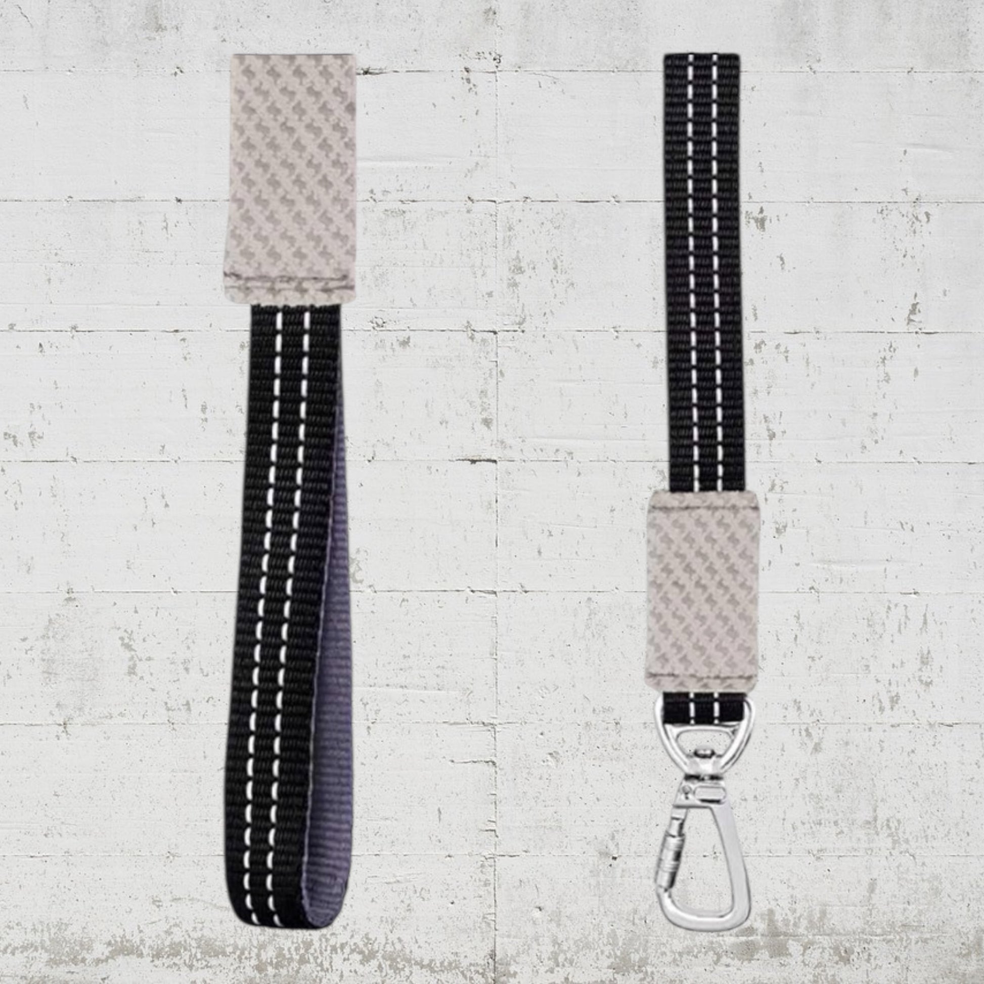 持ち手とハーネスにつなぐ金具の手前にハーネスと同じ生地を使用しています。金具はより安全なロック式採用。