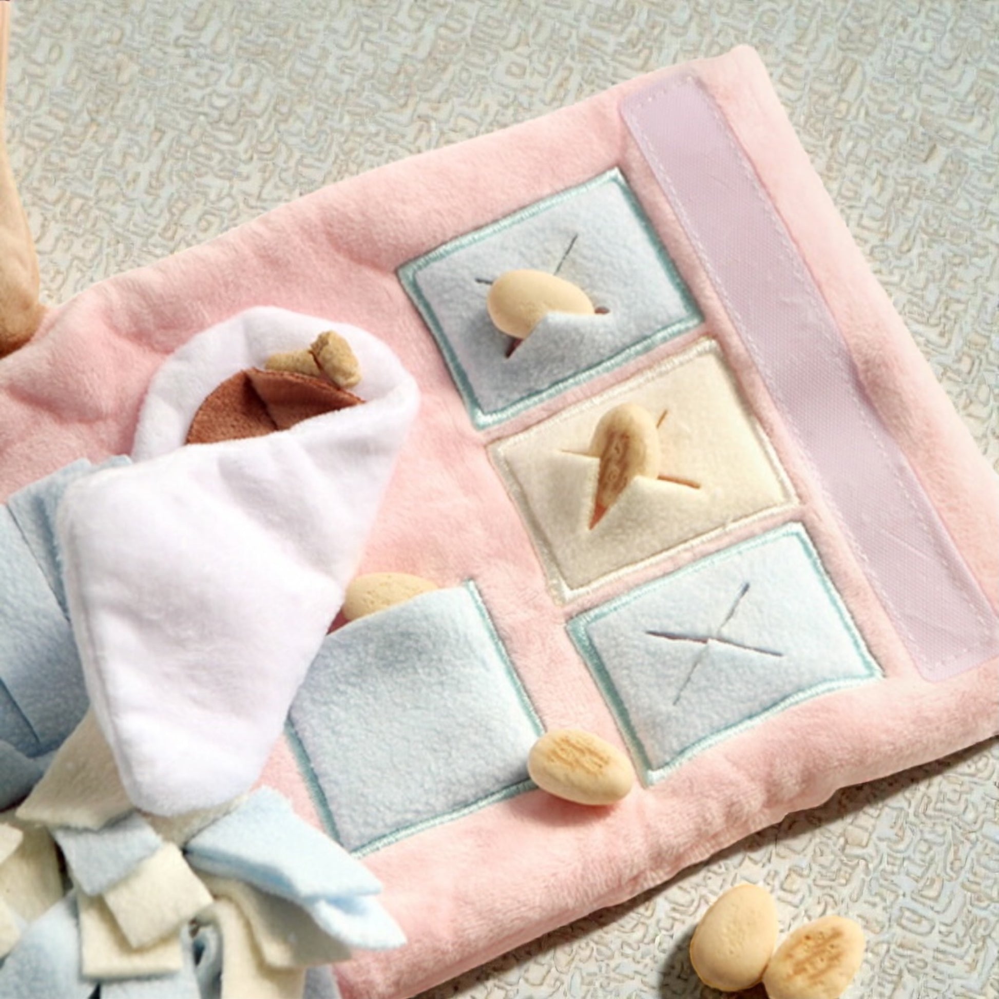 ピーピー音とカシャカシャ音が入っているのでワンちゃんの興味を惹くことができ、お気に入りのおやつやフードをたくさん隠して遊べます。
