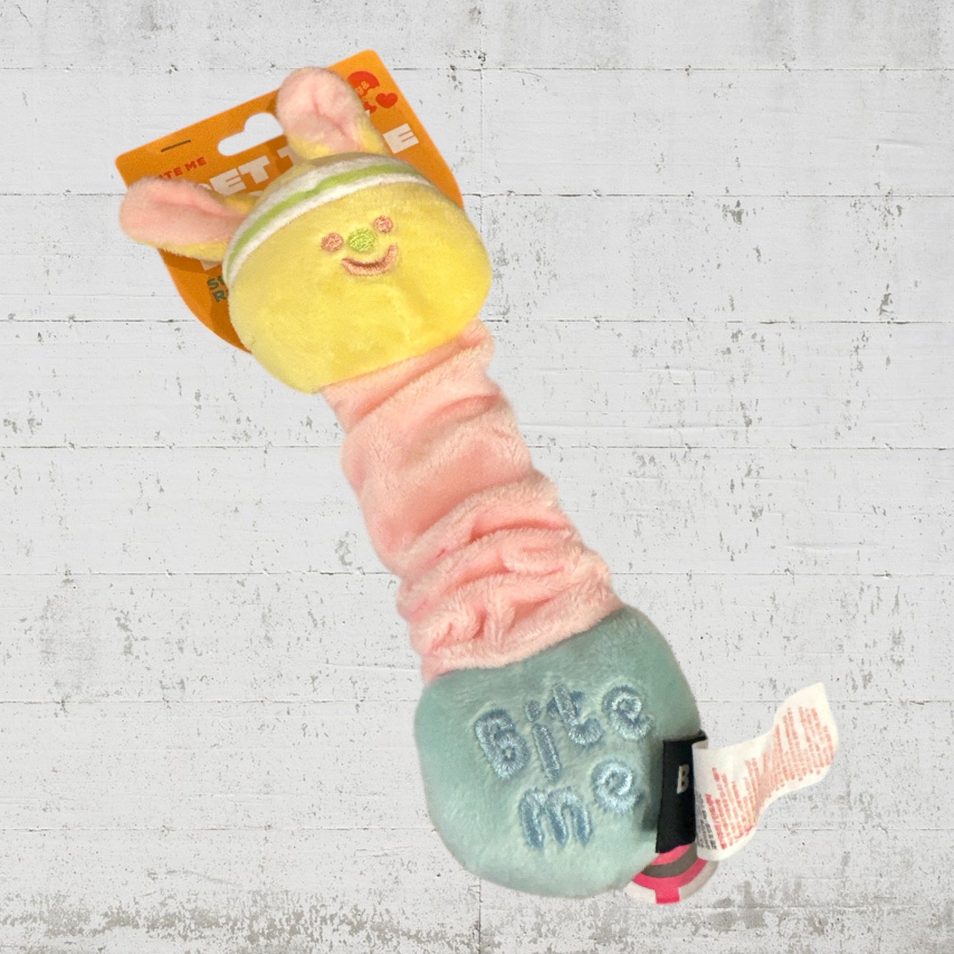 おもちゃの両端にはピーピー音の鳴り笛入。引っ張り遊びがより楽しくなるおもちゃです。