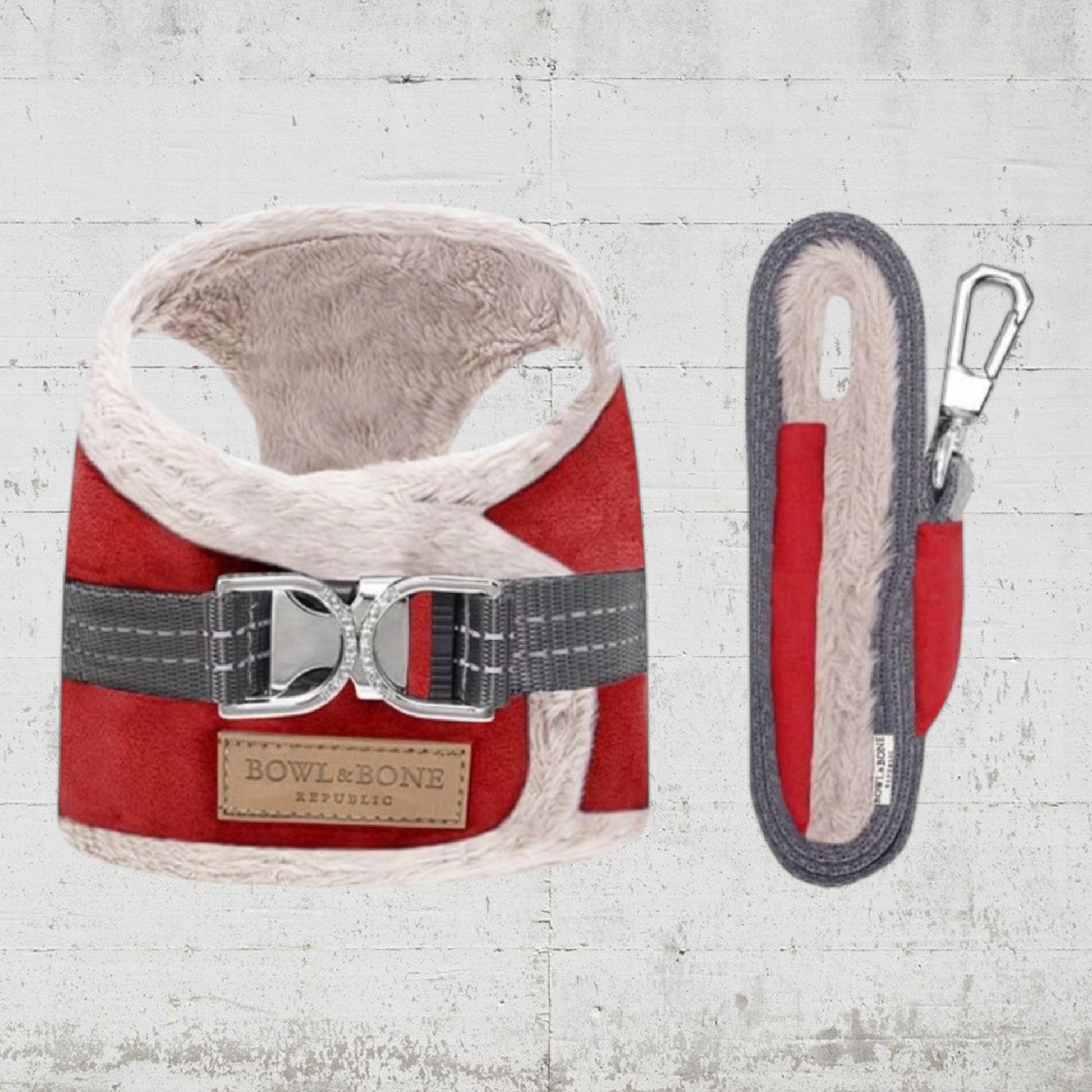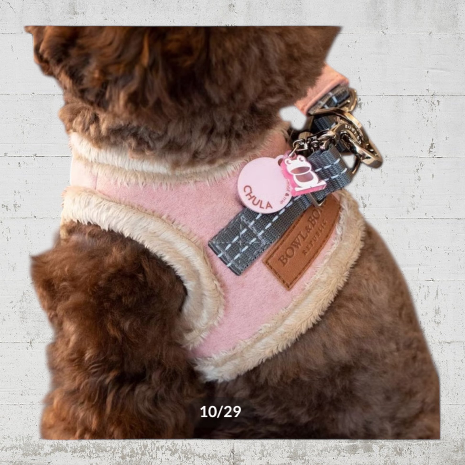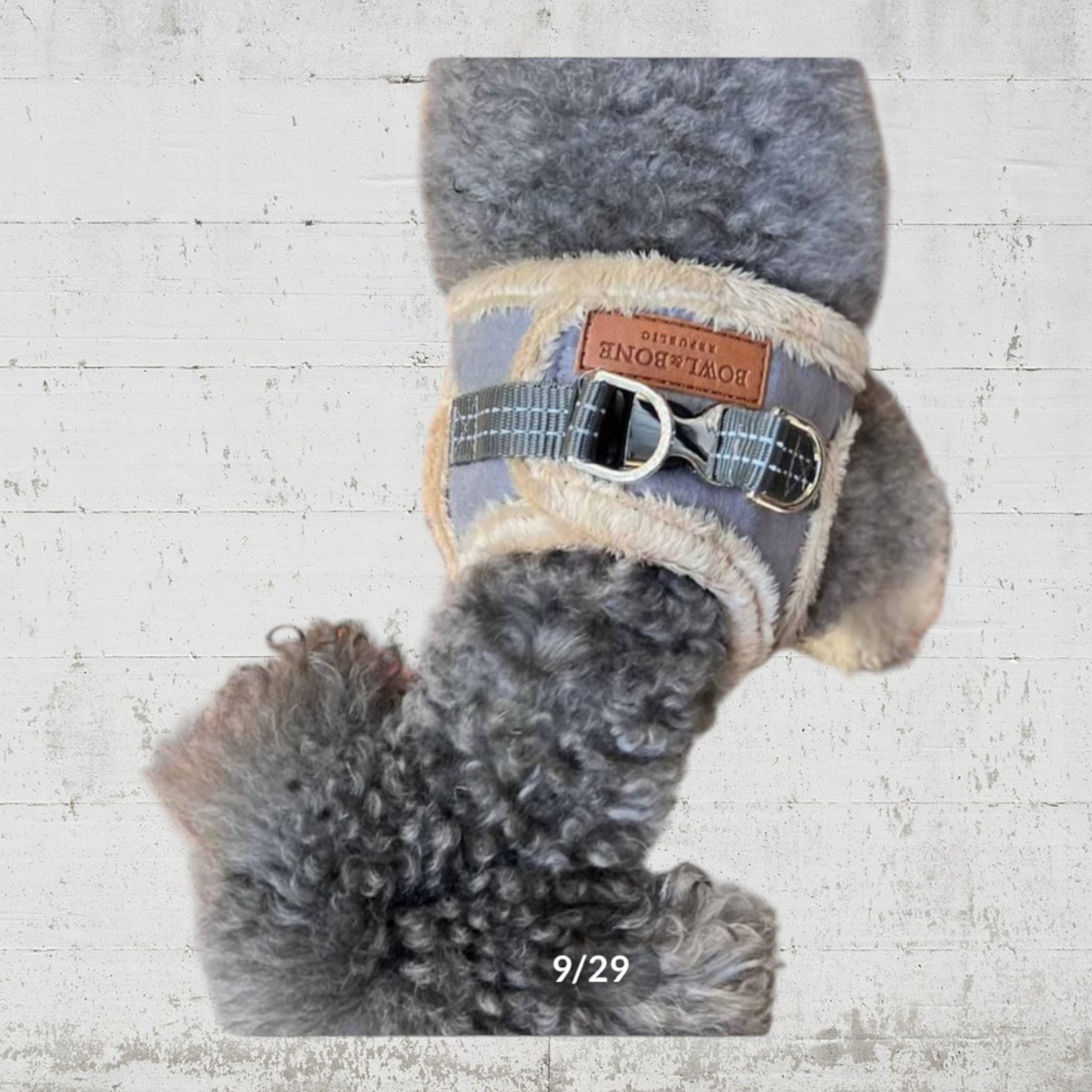 寒がりだけど服はイヤ!というワンチャンにぴったりのもふもふハーネス。