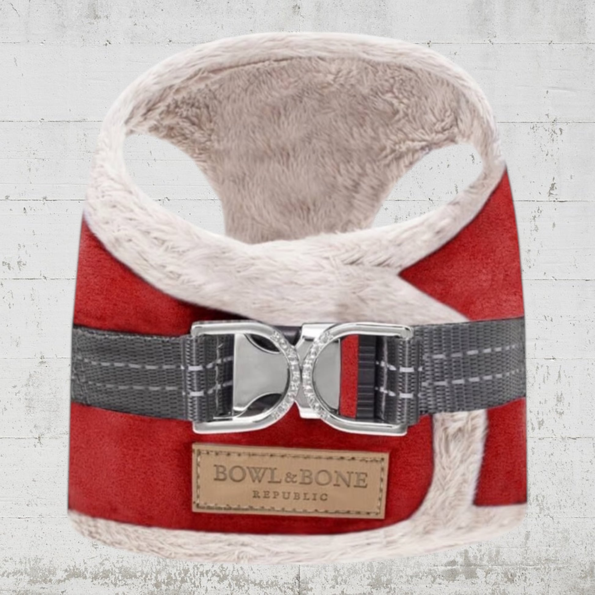 軽くふわふわなハーネスで胸までしっかり覆って暖かく安心して歩けます。