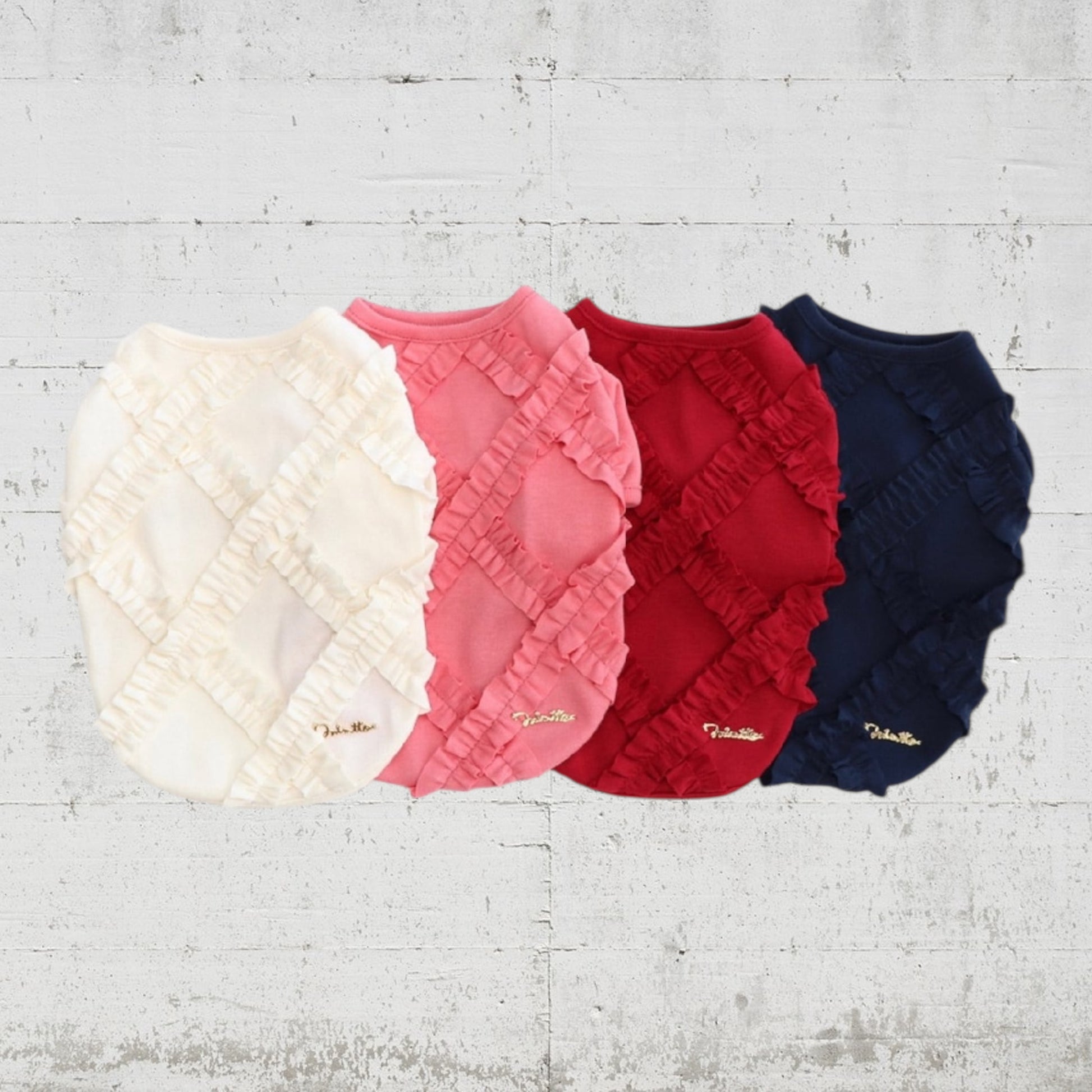 ダイヤ模様に縫われたフリルがシンプルなのにインパクトあり。