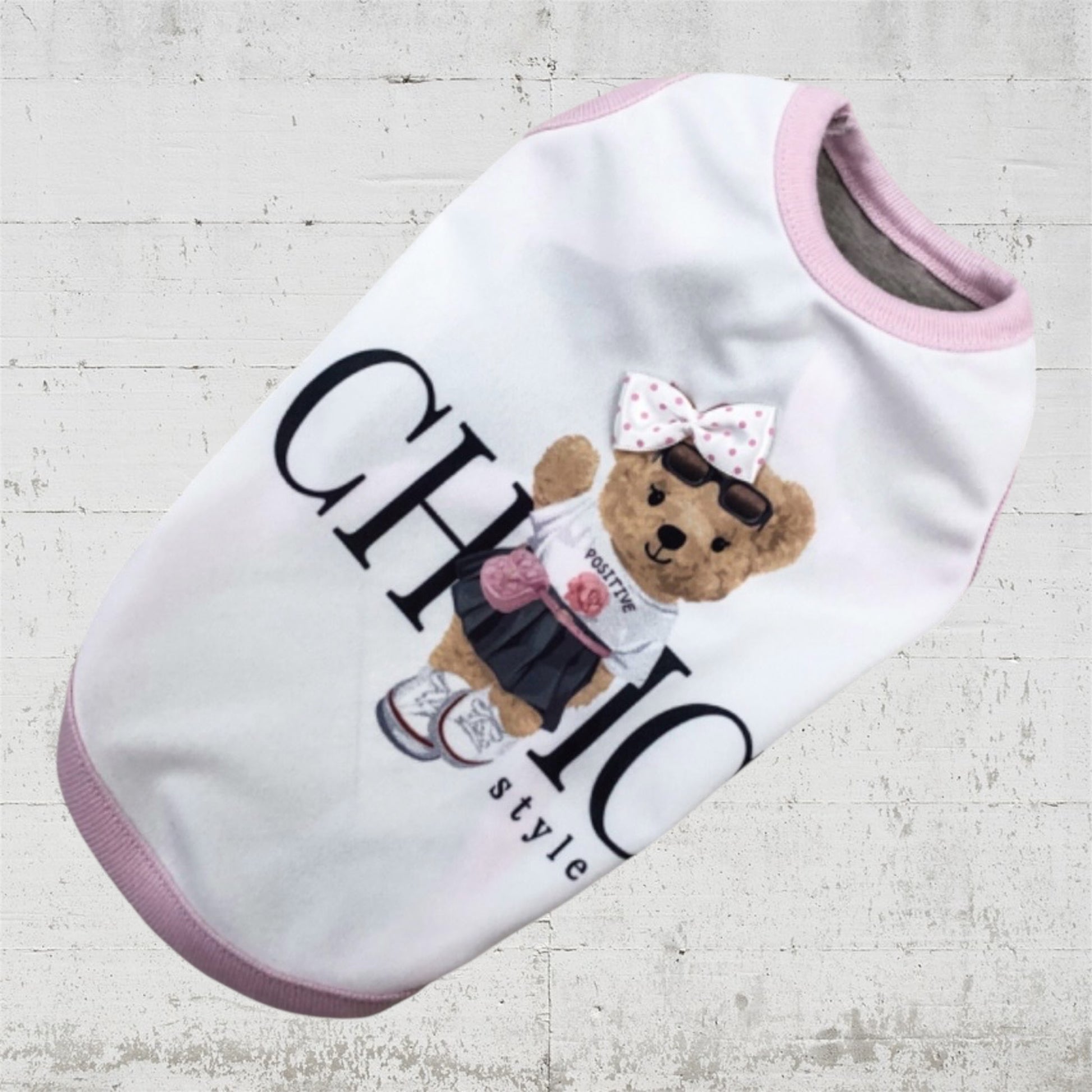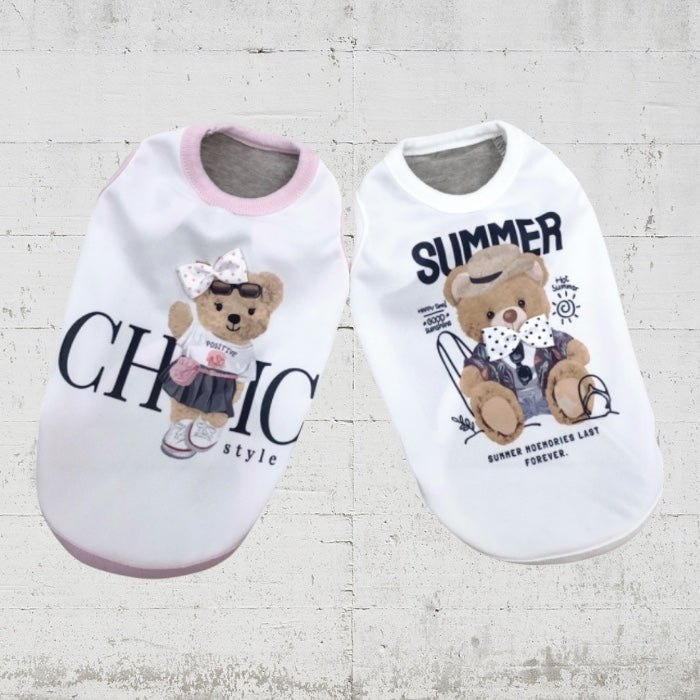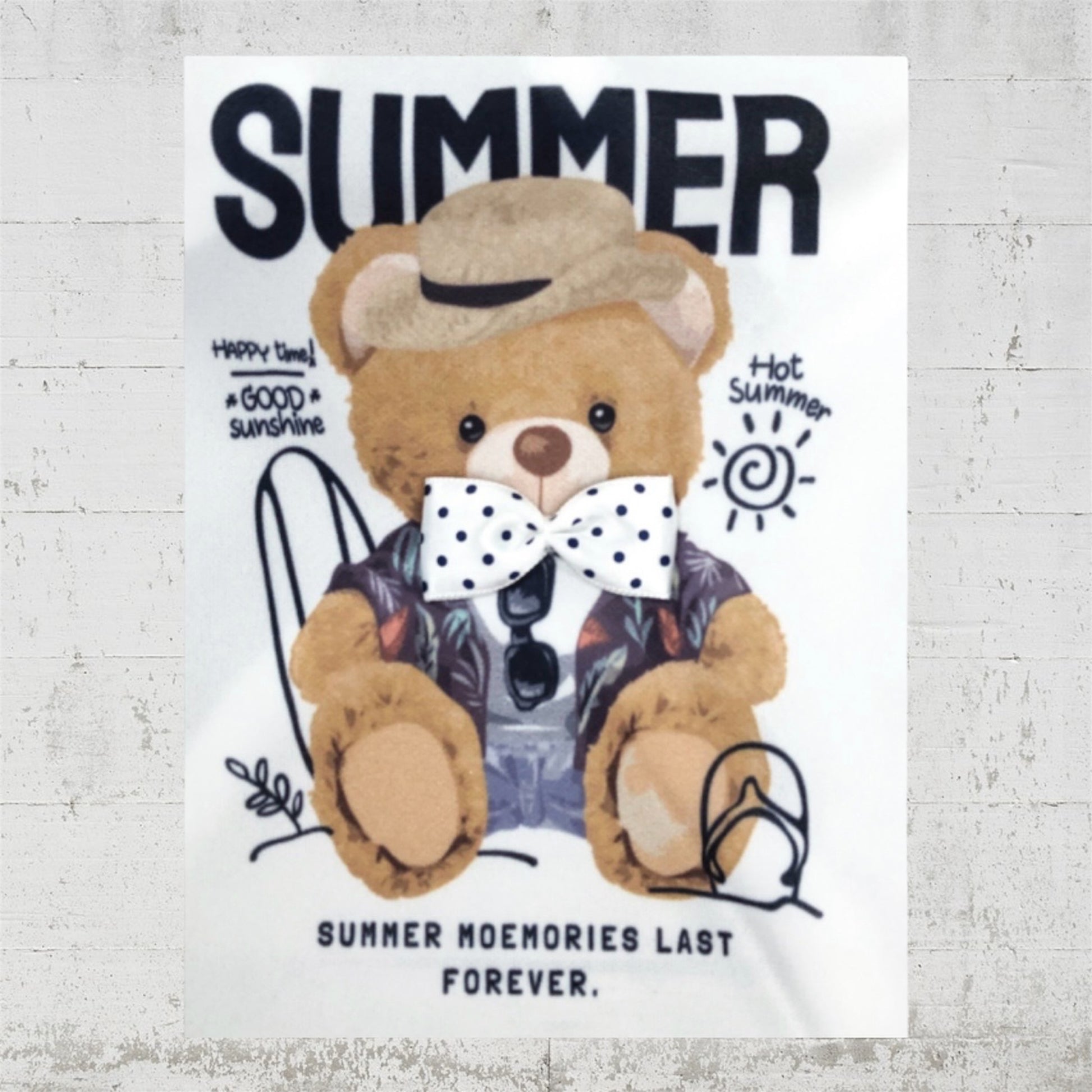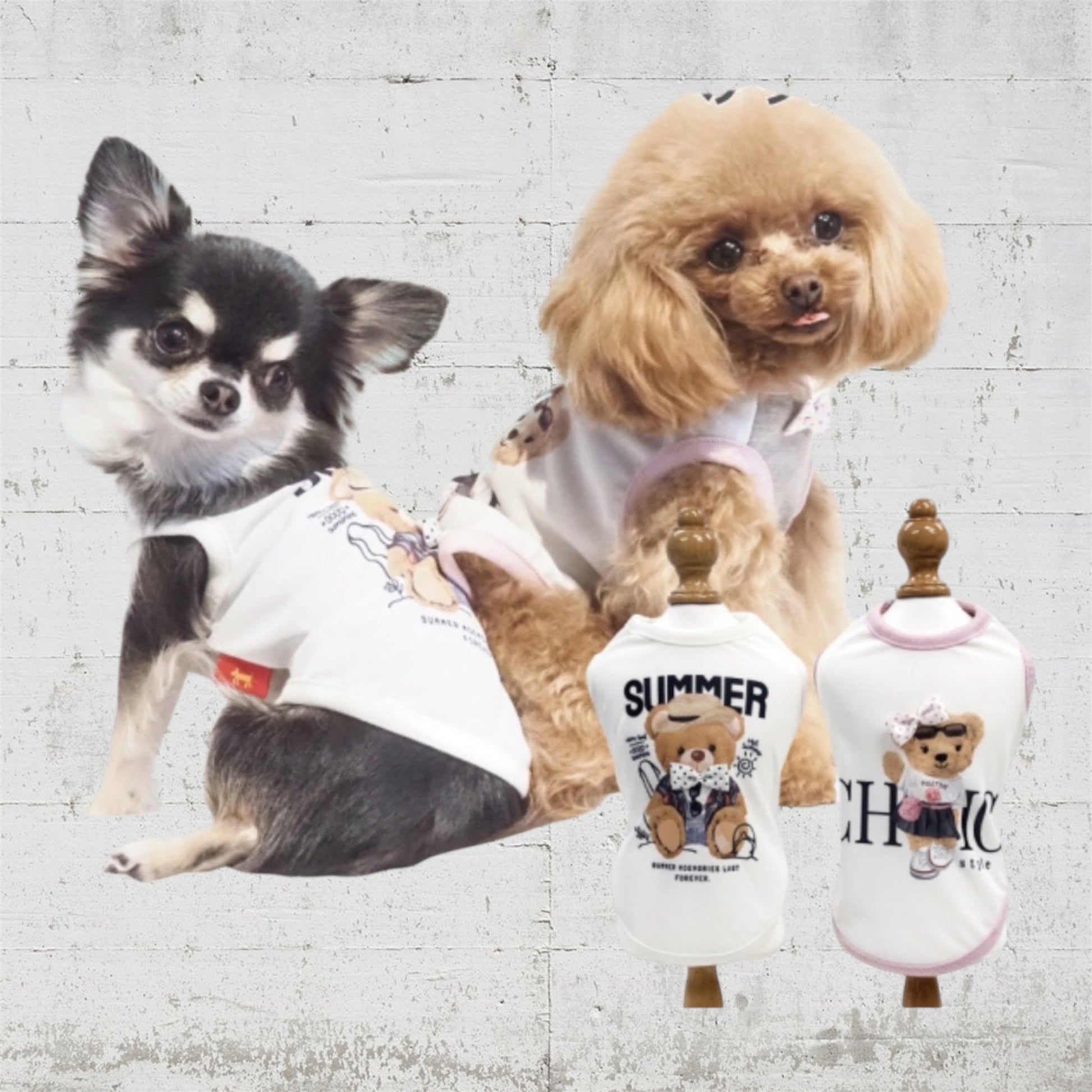 背中はスーパークール×クール生地、前身頃はテラヘルツ生地使用。 「クール加工」「防虫加工」「UVカット加工」「抗菌・消臭加工」4つの「スーパークール×クール」機能+「テラヘルツワン」の機能まで網羅したコスパ抜群の「テラクール」。 スーパークール×クール生地のみ使用のウェアよりも伸びが良いのも高ポイント♪ カジュアルなベアプリントにリアルリボンが可愛いです。