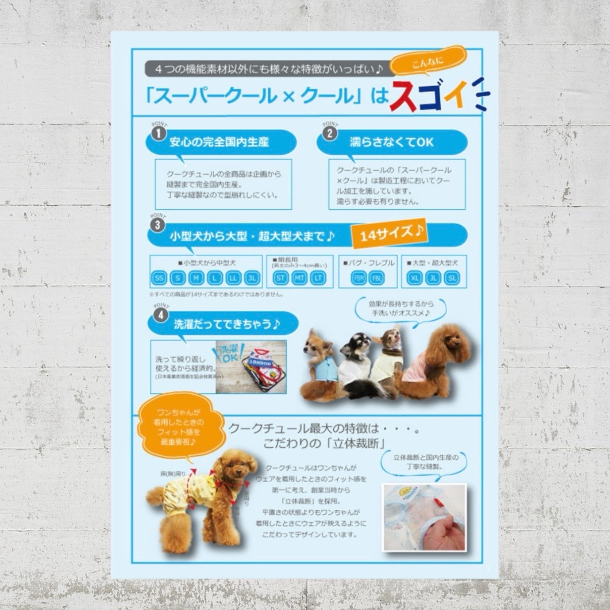 「クール加工」「防虫加工」「UVカット加工」「抗菌・消臭加工」4つの機能が1枚に凝縮した「スーパークール×クール」。