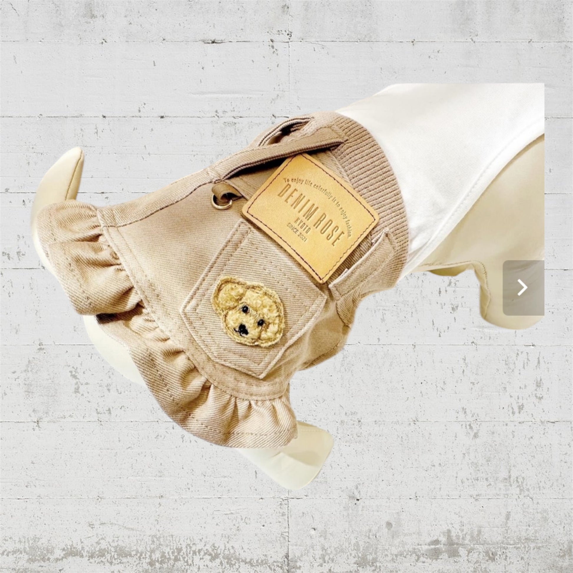 ワンポイントのワッペンとオリジナルの皮バッチが可愛い一枚です。チャームもつけれるよな仕様になっており、ファッションをお楽しみいただけます。