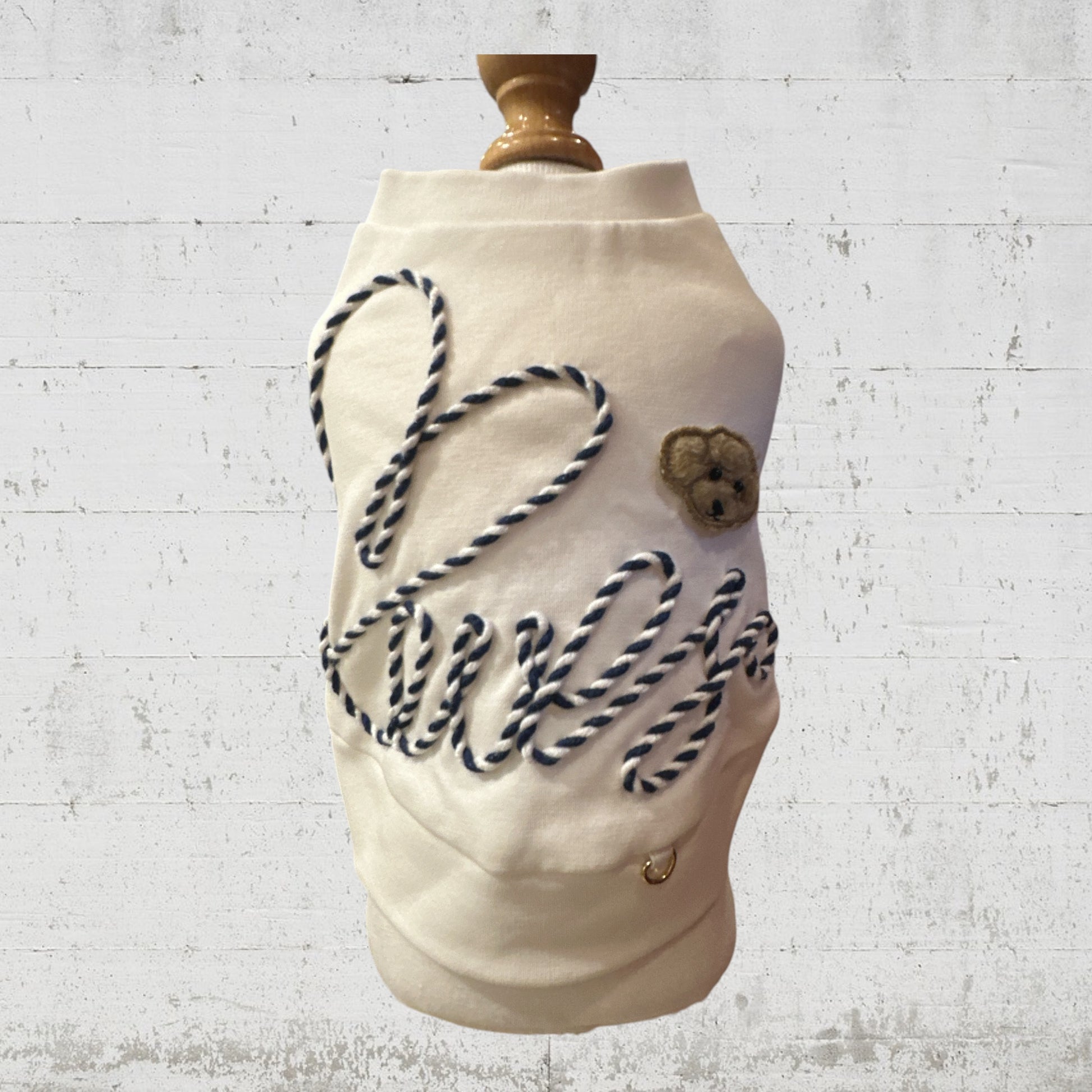 L=首回り30㎝、着丈27㎝、袖丈12㎝、袖口12㎝、胴回り44㎝