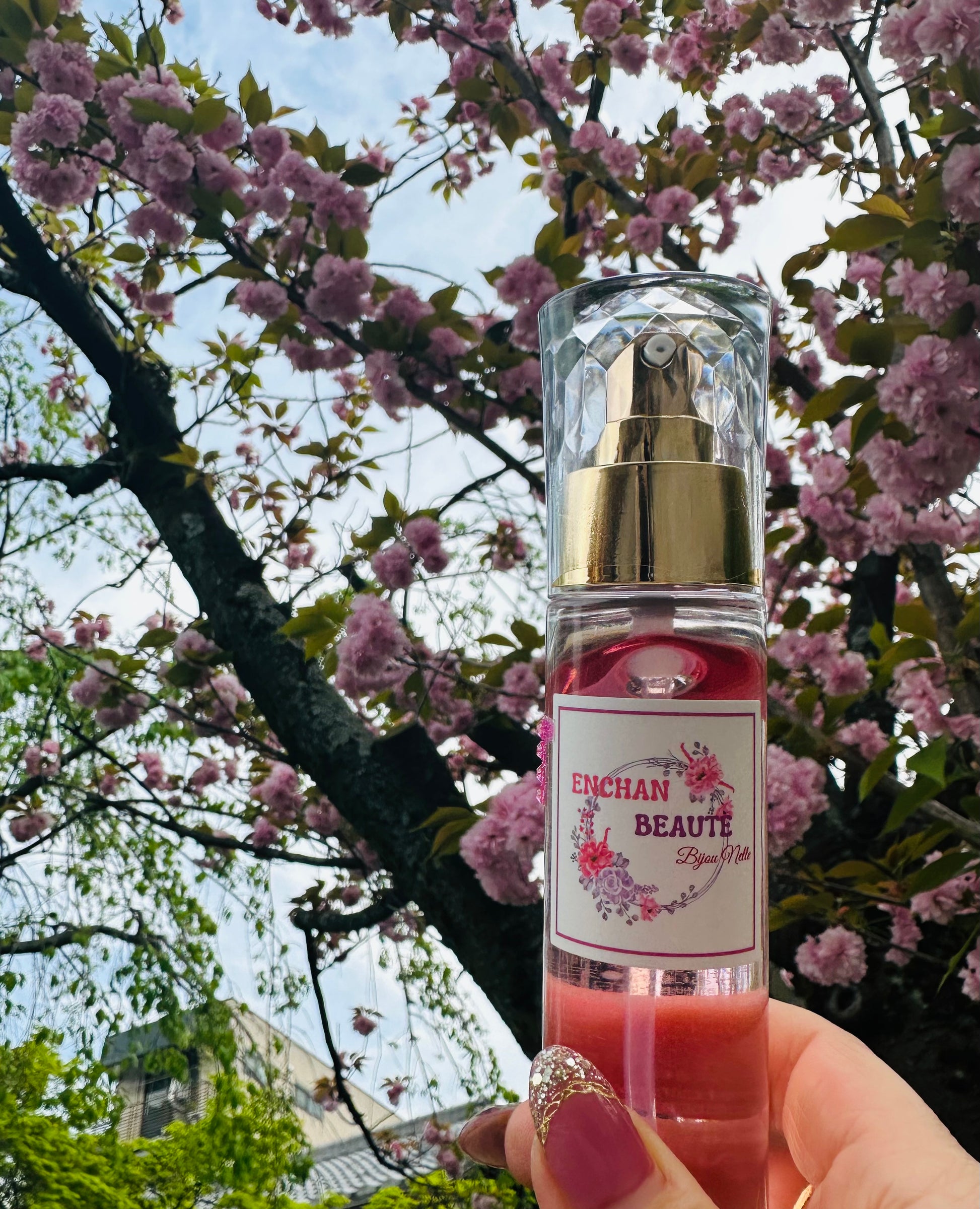 香水ボトルのようなきらきらしたキャップと、ピンクのオイルはまるで宝石のよう💎