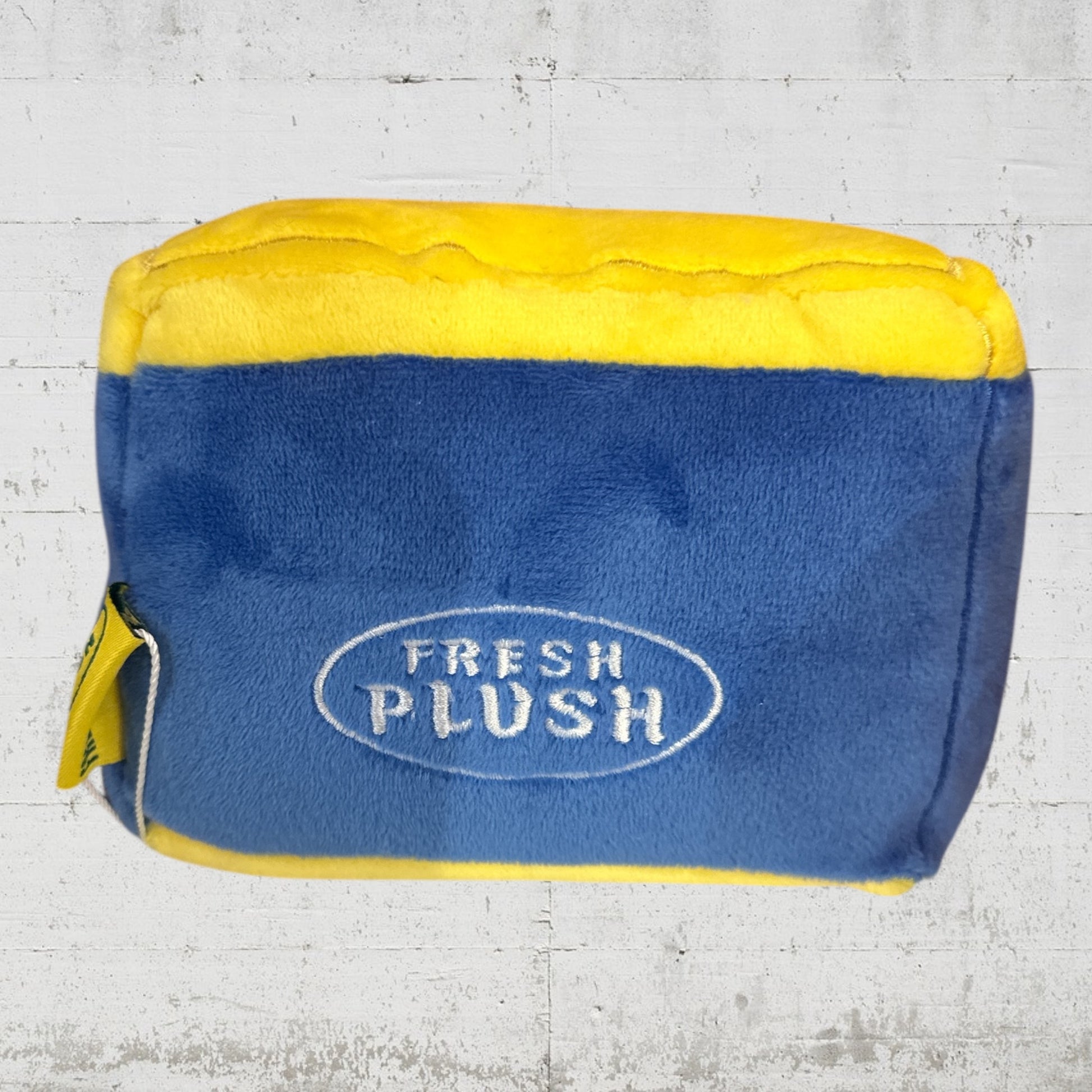本物そっくりなスパムのおもちゃ。カシャカシャ音が鳴るよ。お飾りとしてもかわいい。韓国で人気のFRESH PIUSHのおもちゃです。