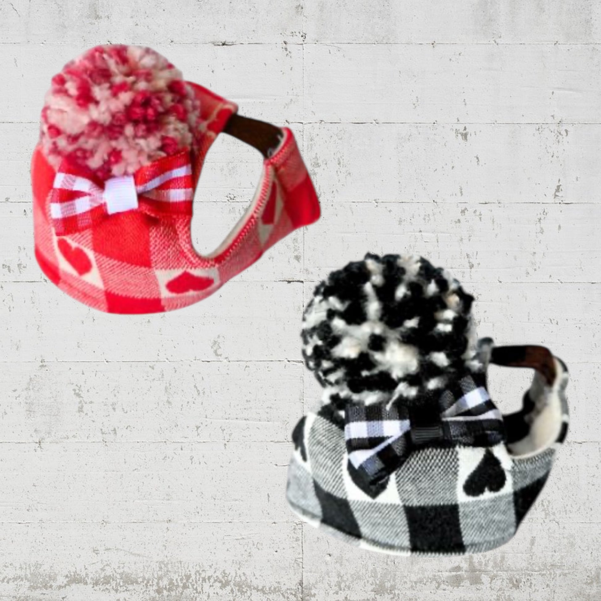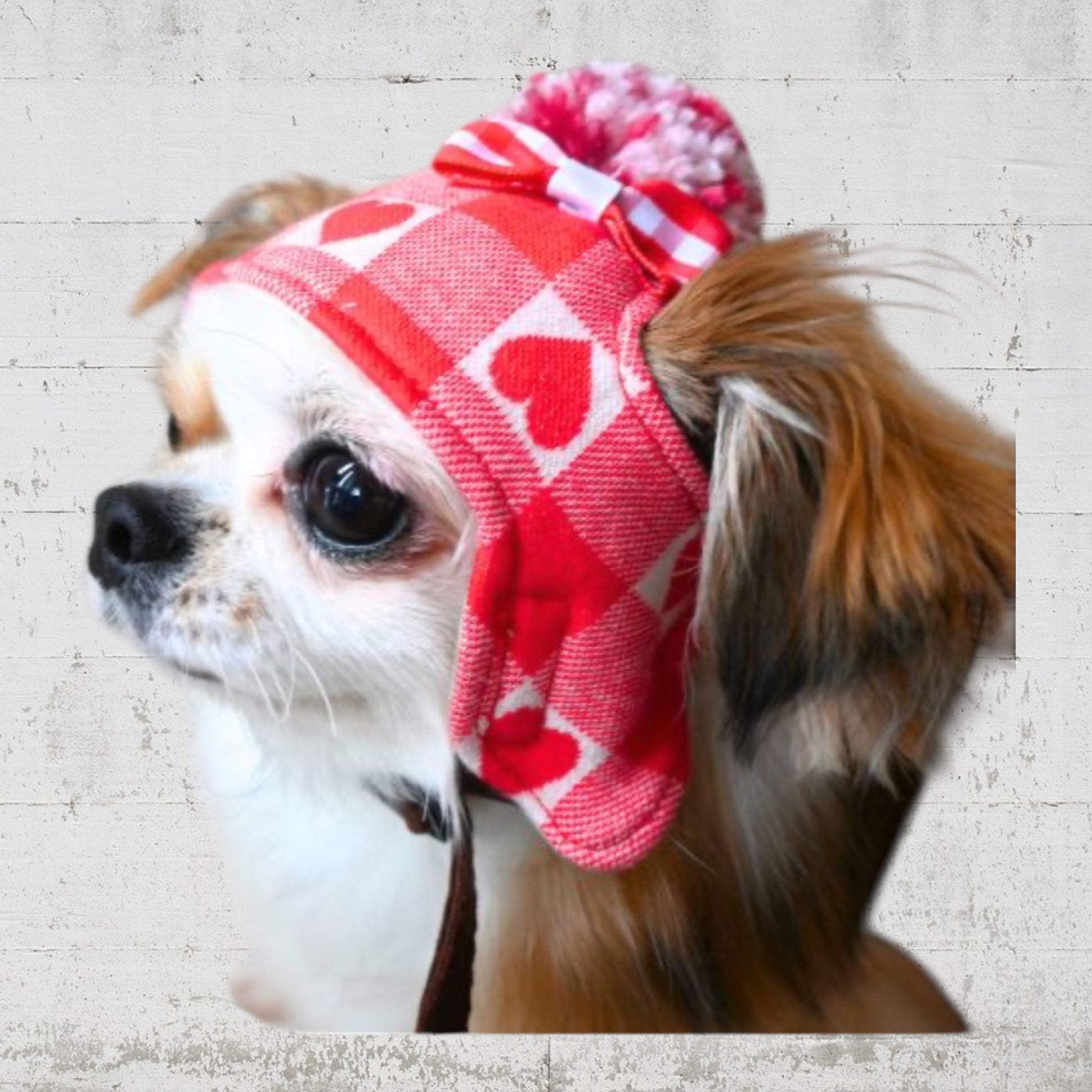 チェック柄にハート模様がとっても可愛いニットパイロット帽です★