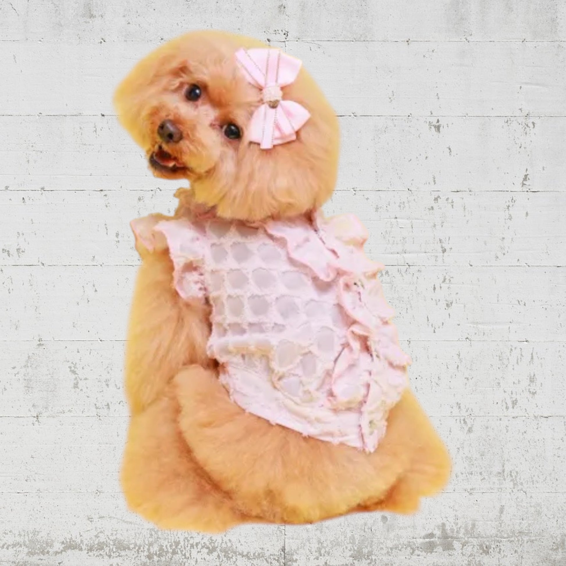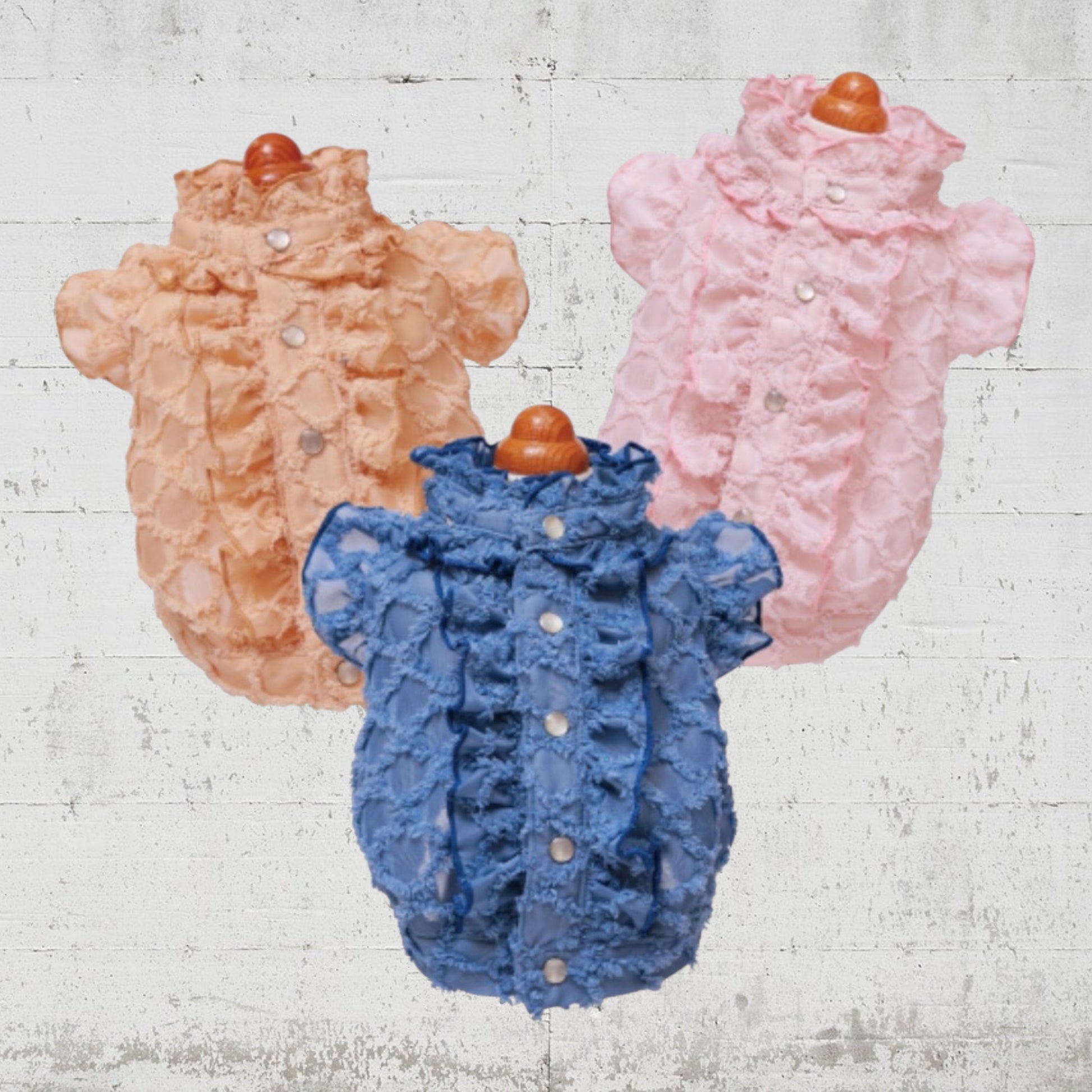 立体的なシャギー生地を使用した、華やかなお洋服。透け感のある生地を使用しているので風通しが良く、快適に着用いただけます。