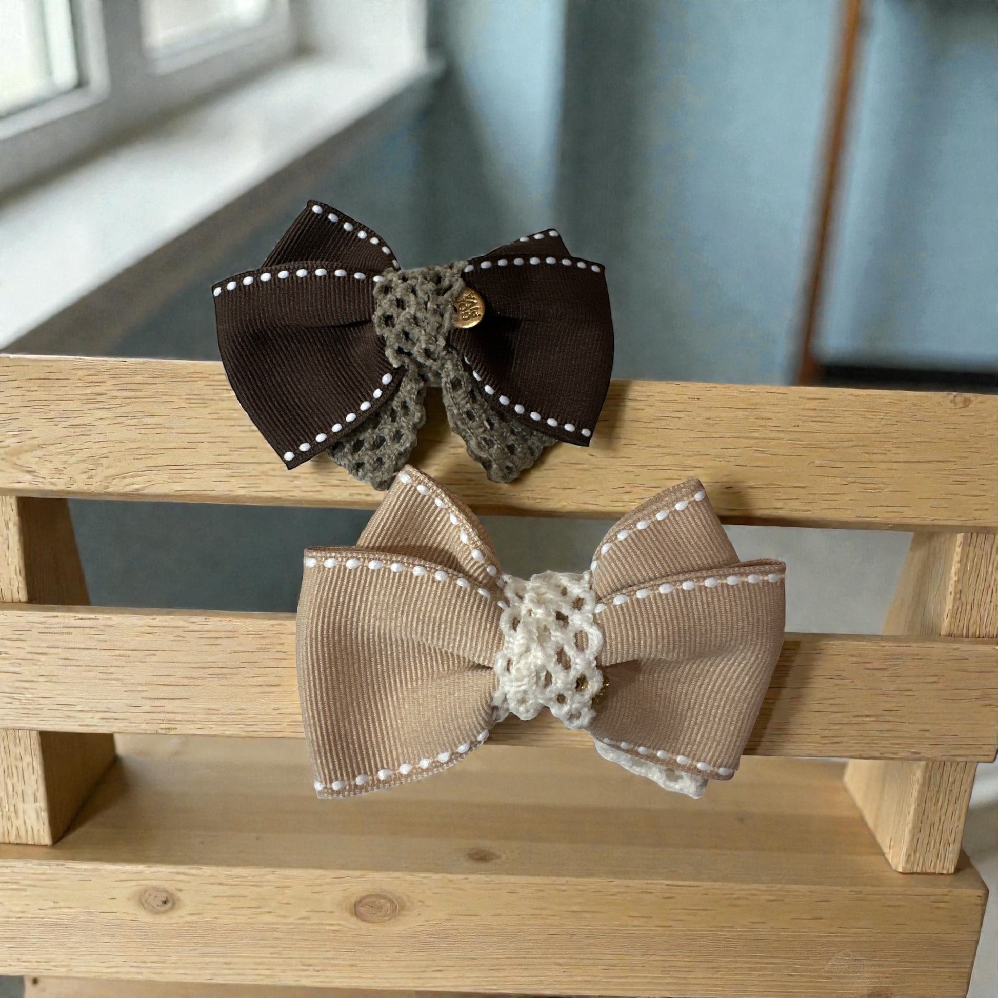 上質なグログランにスウェード調のメッシュリボンが大人可愛い。どんなお洋服にもあわせやすい