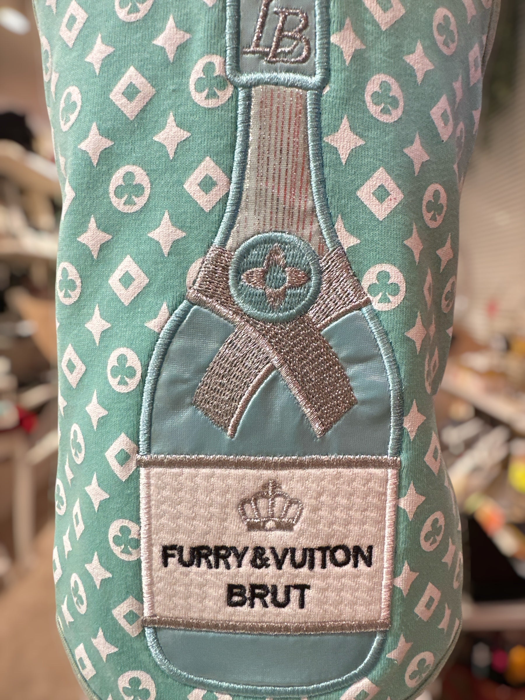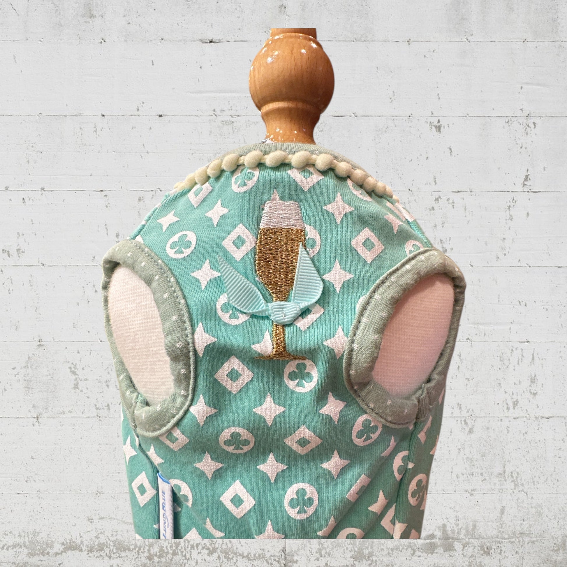 オリジナルのモノグラム柄にシャンパンの刺繍を施したラグジュアリーな一枚。