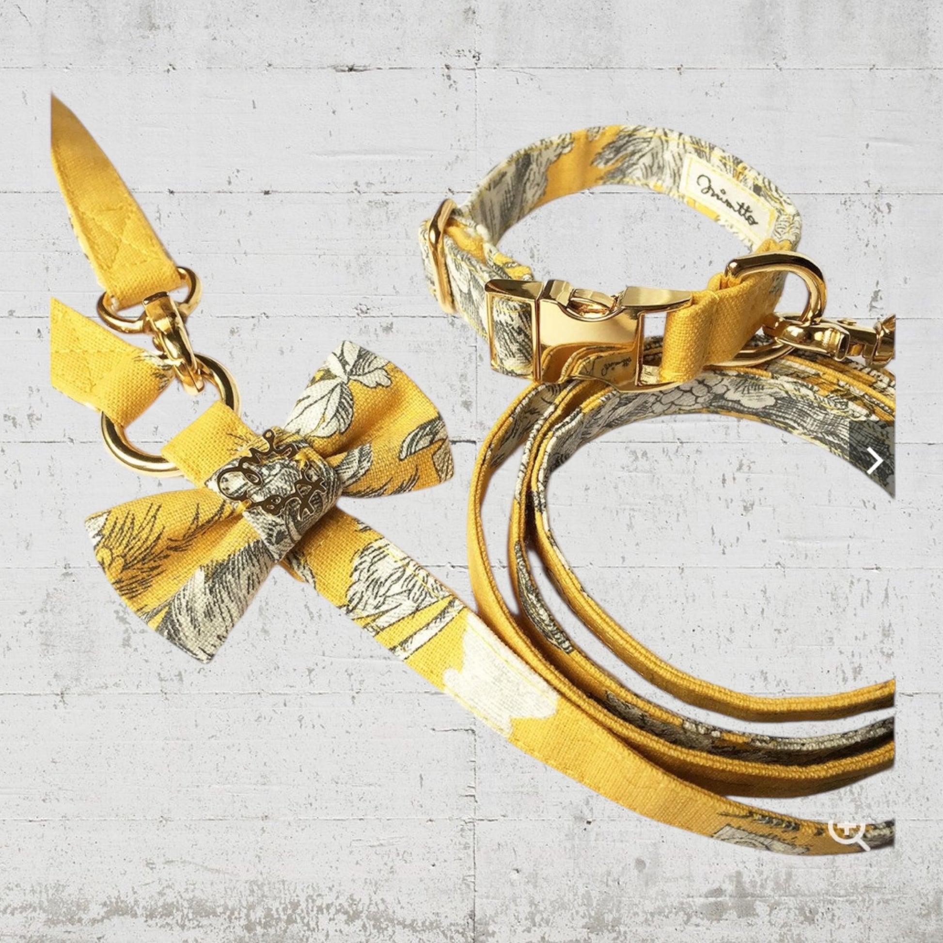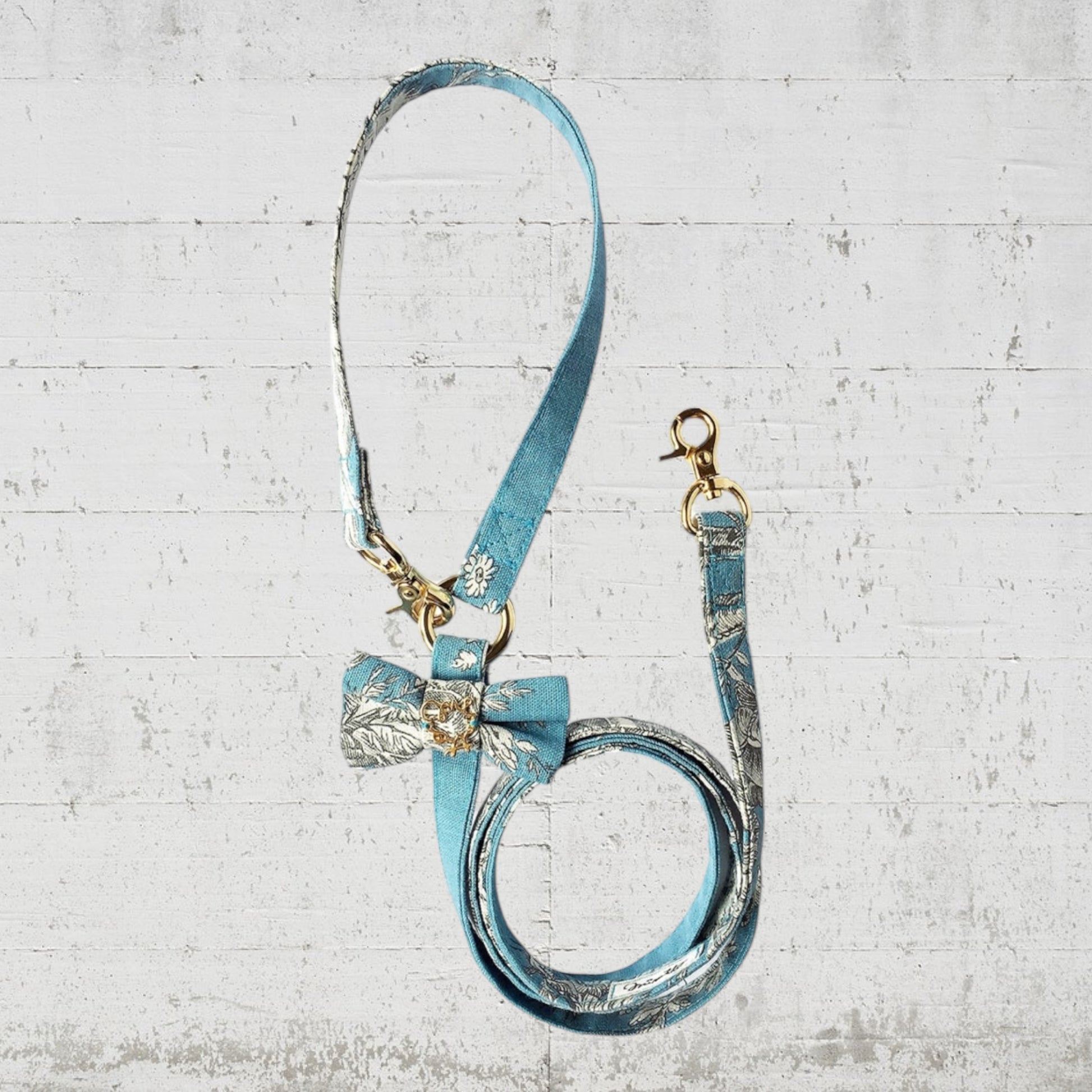 フランスの風景画生地にリボンがポイントのフレンチシックなペイサージュリード。お揃いの首輪、ハーネスと組み合わせるとさらにおしゃれ度アップです。