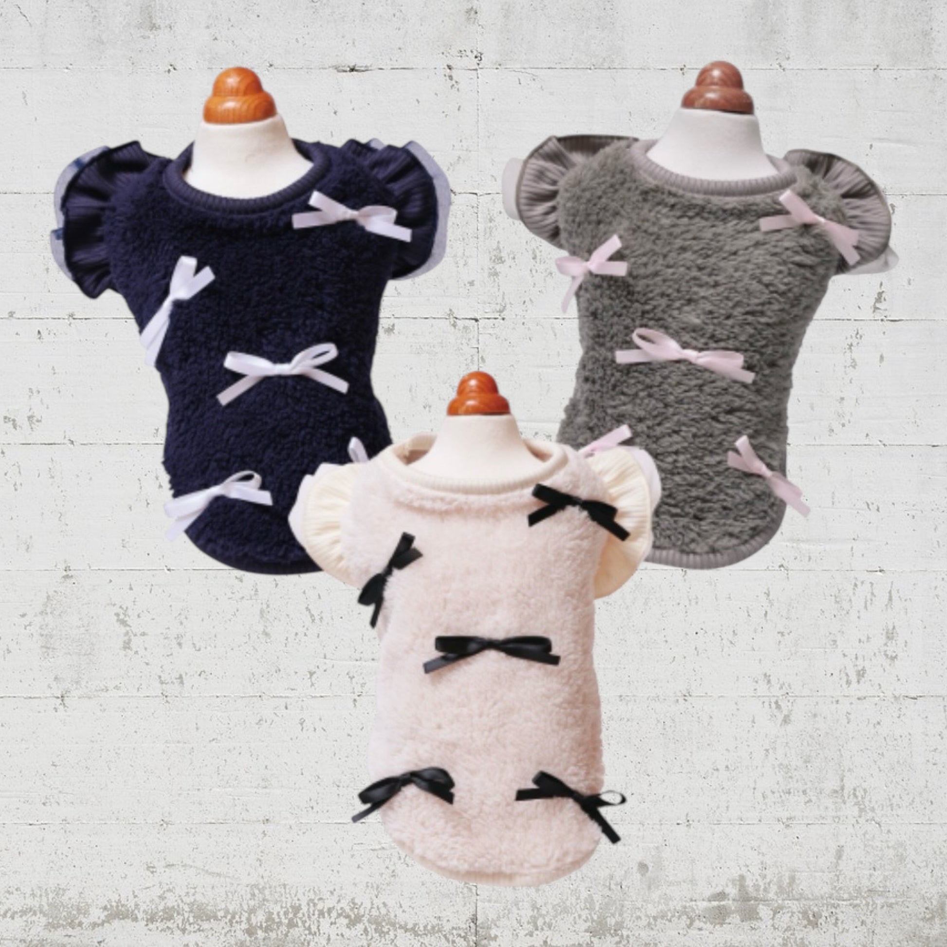 もこもこのボア生地にたくさんのリボンをトッピング!